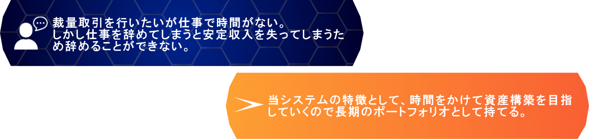 当システムは当社がホームページに記載した過去の実例と同じような利益が出ることを保証するものではありません。